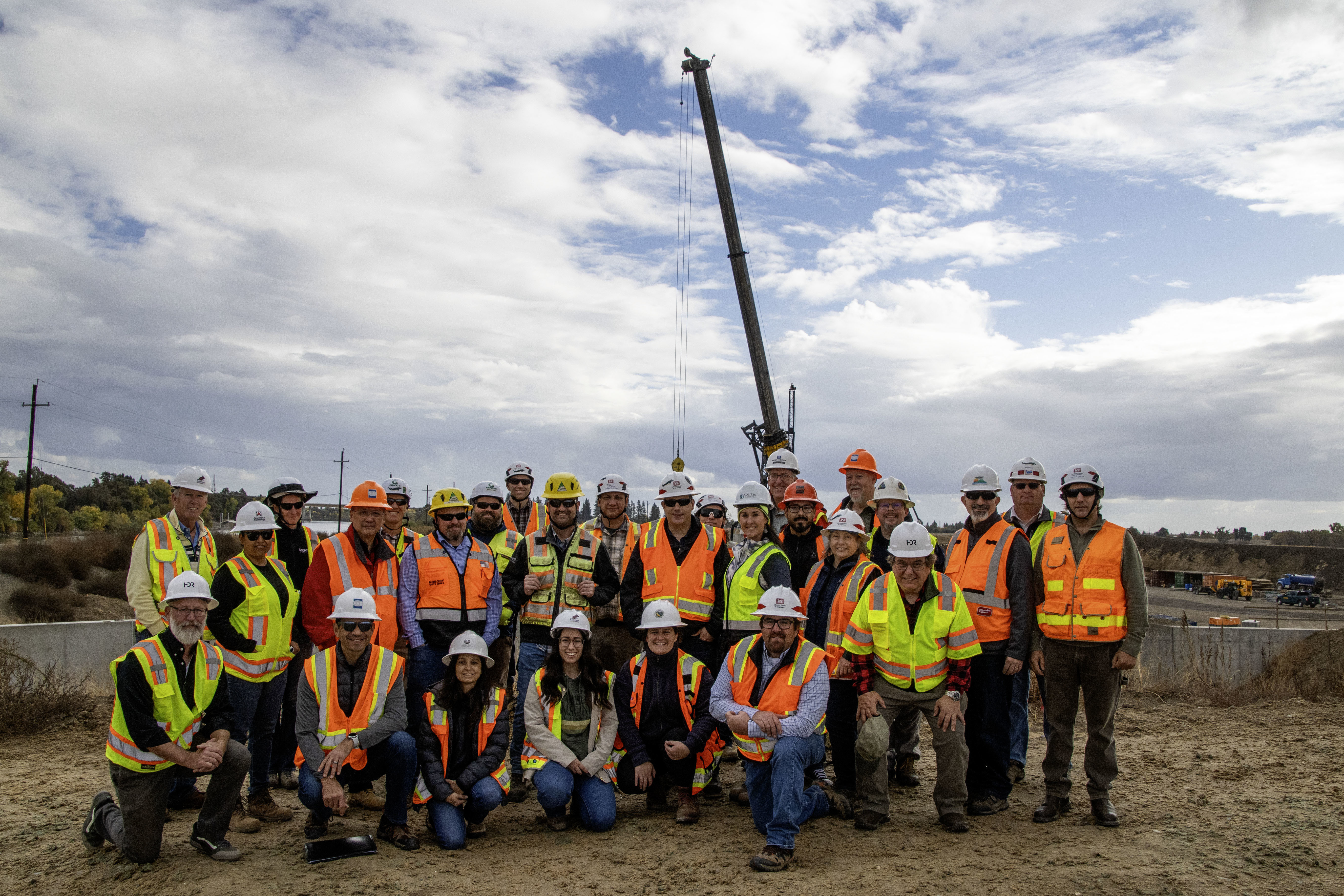 Members of the U.S. Army Corps of Engineers Sacramento District and the Society of American Military Engineers pose for a group photo in front of ongoing construction at the Sacramento Weir Widening Project, Nov. 14, 2024. The district hosted the group for a tour highlighting key projects focused on flood control, fish passage, and levee improvements in the Sacramento area. The visit also included a stop at the district’s facilities at Folsom Dam earlier that day.