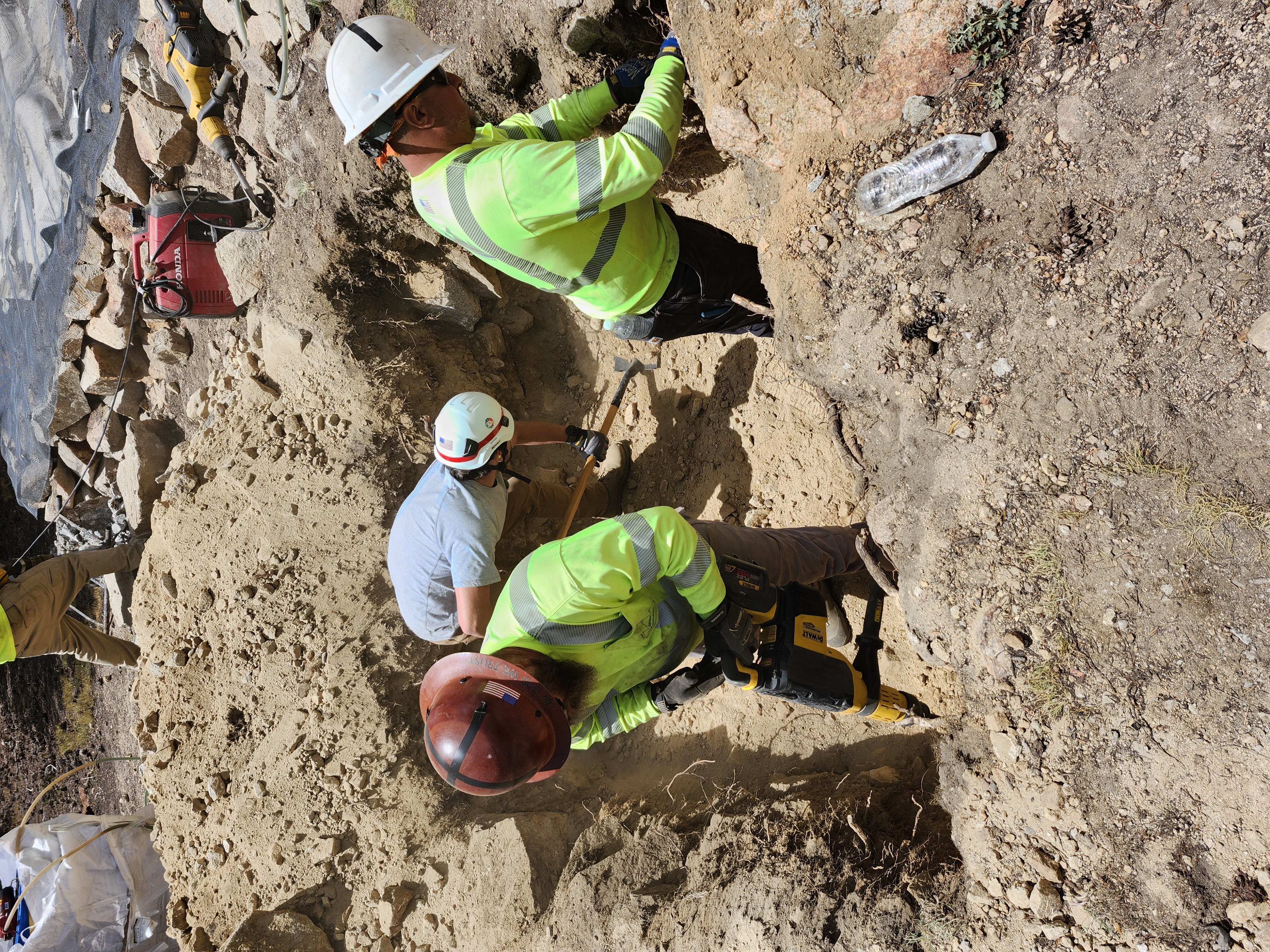 USACE Sacramento District team member and contractors from Sierra Hydrographics dig the footing for a new weather station in Lone Pine, Calif on Aug. 12, 2025. Upper Tyndall Hydrometeorological Gaging Station was completely rebuilt after it sustained damage during a heavy snowfall year in 2017. (U.S. Army courtesy photo)