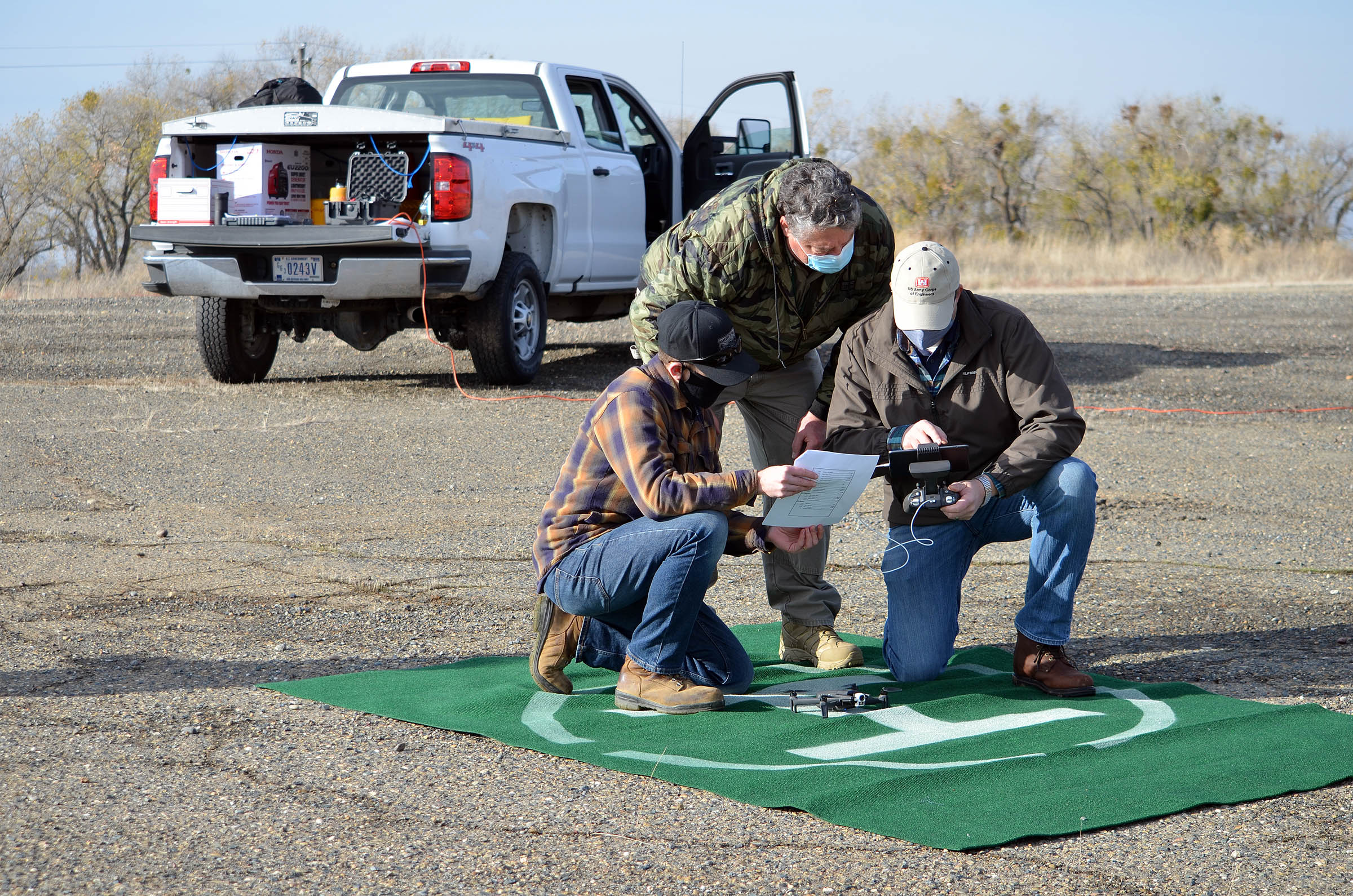 raining, this would be their first time to get outside and put the UAS into flight. And upon completing the day’s training, they would join the District’s Unmanned Aerial System Team as USACE-certified UAS pilots. Each would also earn the status of certified Visual Observer, designated to keep an eye on airspace when another pilot operates the UAS.